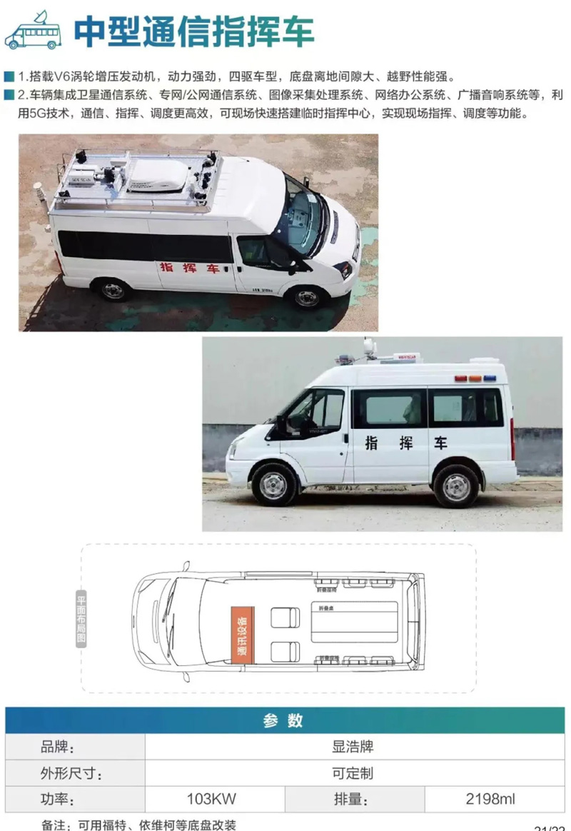 1.动力强劲,四驱车型,底盘离地间隙大、越野性能强,通过专网或卫星链路快速建立与指挥中心现场的视频、音频、数据通道;