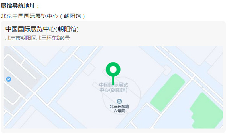 展馆导航地址:北京中国国际展览中心(朝阳馆)