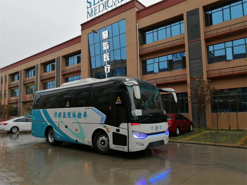 奔波、多次就诊等难题,大型体检车上门提供体检服务。体检车上面有医院的设备,数字化DR设备(全身多部X线透视检查)、防辐射铅房、电测听室(纯音听域测定)、彩超室(全身多部位彩色多普勒超声检查)、心电图室、内科诊室、标本冷藏冰箱、药品冷藏冰箱、生化采血室。老人们进行了血脂、血常规、尿常规、肝功能、腹部彩超、心电图、肿瘤筛查等方面的检查。