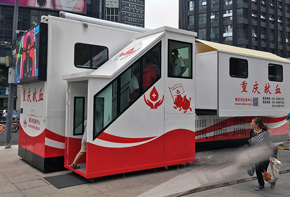 移动献血屋有什么特点呢?它是有轮子的,借助拖挂车牵引过来即可。商店应急电源设备等,以保证机舱内的空调,血液存储设备的正常运行。还有就是,在献血屋的前面,有一个应急窗口,遇到一些问题需要取血或紧急情况时候,可以更加迅速地在这里处取出。这种更加宽敞的移动献血屋,能给献血者提供更好的献血服务。献血屋有一个相对独立的分区,它也配备了更好的设施,无线网络,将提供一个更舒适的环境和更好的献血者献血经历。