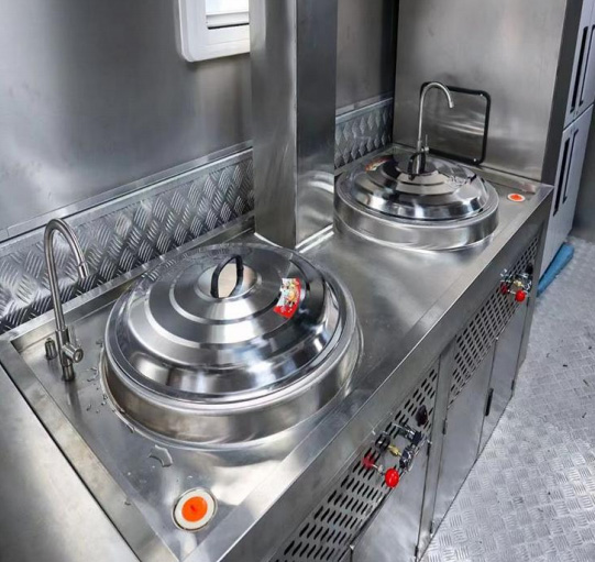 炊事车整体内部布局充分考虑餐厨作业流程和特殊使用环境,可有效提高炊事效率。