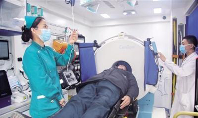 脑卒中中风是脑血管疾病,缺血性和出血性两种,这样脑部的缺氧和损伤威胁生命健康。脑卒中CT救护车可以快速识别脑部病变。上车就等于开始抢救。CT的诊断方便快捷,脑组织可以清晰的显示,区分脑出血与脑梗死确定大小位置性质,急性卒中的首选方法。脑卒中的主要CT表现,脑内边界清楚、密度均匀高密度区。CT值为60-80Hu高密度血肿周围低密度水肿带围绕。因血肿与脑水肿引起脑部结构组织的受压、中线结构移位。破入脑室或蛛网膜下腔。CT检查报告时,必须注意图像是否清晰,有没有伪影或干扰。