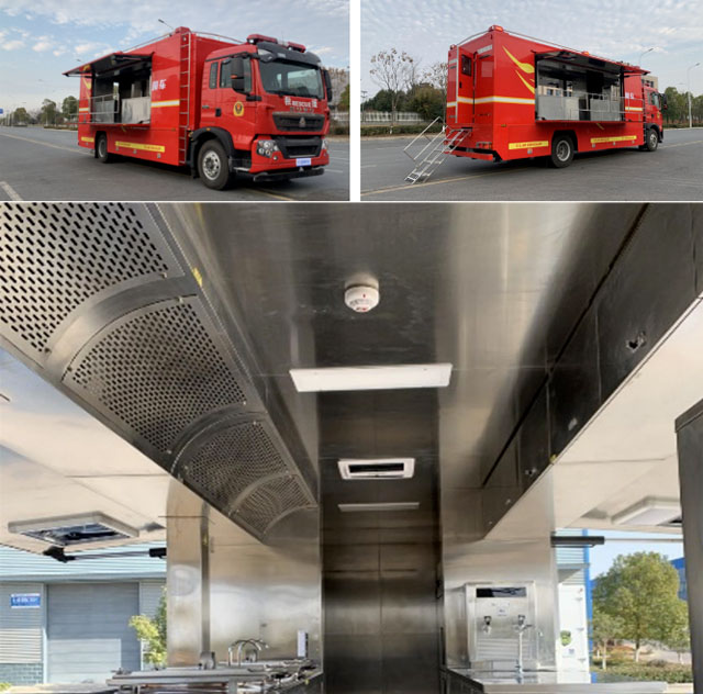 为打造消防后勤保障全生态,后勤保障车主要用于保障救援团队及受灾群众的衣食问题。洗涤保障,可以将衣服洗干净、烘干、挂烫等服务。自动化程度高。灾害事故现场为消防员及人民群众提供衣物清洗。炊事保障为野外执勤人员制作、加工饮食的作业类专用汽车,最高可满足一小时为几百人提供餐食,属于消防后勤保障类车辆。宿营保障主要装备床铺等宿营设施。集成休息卧铺等需要,提升了输送及宿营工作的舒适度。淋浴保障车在在野外执行任务或者边远分散地区长期工作时的洗浴困难的问题,提高部队后勤综合保障能力,是为野外工作人员提供淋浴的作业类专用汽车。卫生车是移动厕所,洗手池及污物收集处理等救援时作为临时厕所使用的作业类专用汽车。照明保障车是大型活动,夜间的抢险救灾是提供照明用途的专用车。