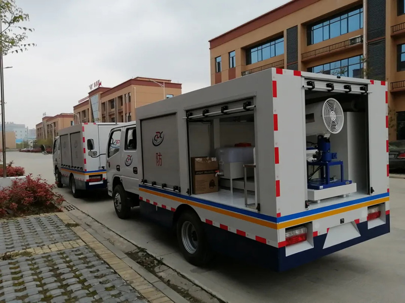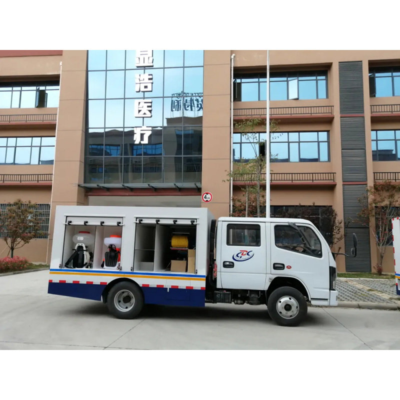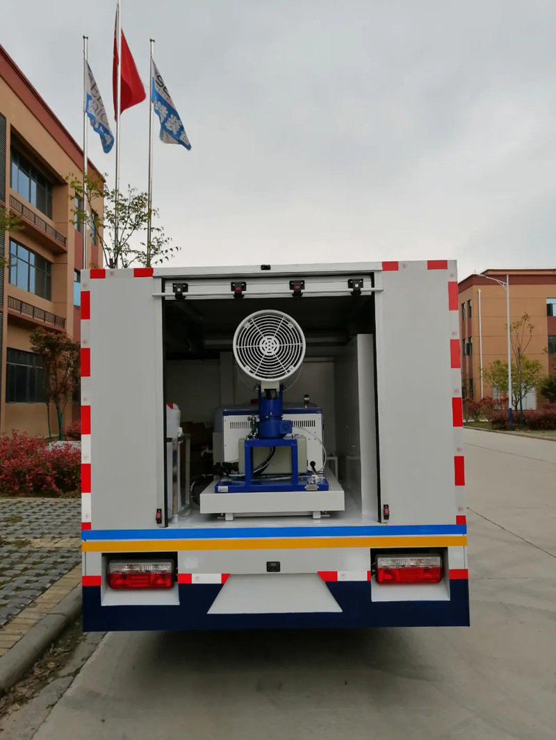 防疫消杀车由汽车底盘改装,喷雾机组,车厢,罐体,风机,供电,等系统等设备组成。自动化程度高,低水位保护系统:各种罐体布局设计合理,和车厢很好的整合一体化发挥了空间优势。维护保养简单超大罐体容量大大延长作业时间、提高了工作效率。安装了低水位通知警告系统。水不够了降低喷洒转速。防止缺水设备损害。操作简单一人就可以完成防疫消杀工作。