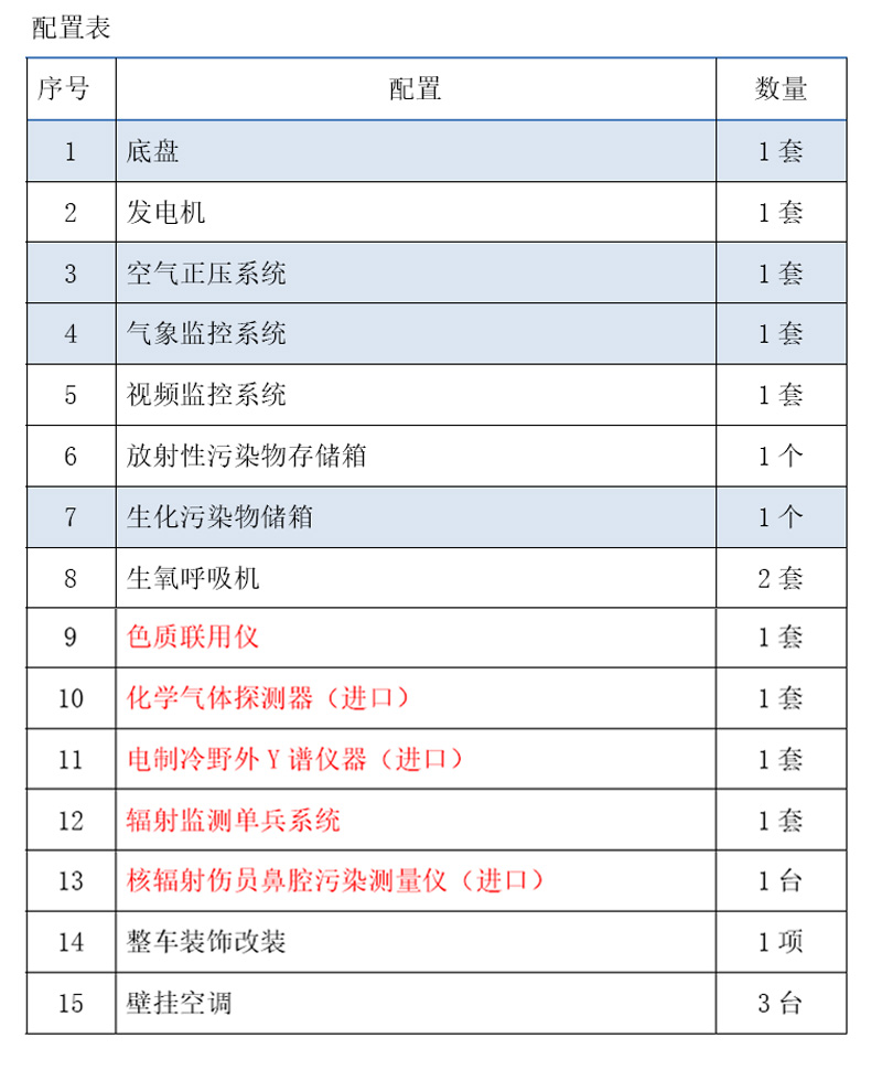 核化应急监测车配置