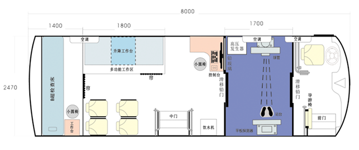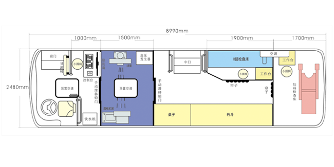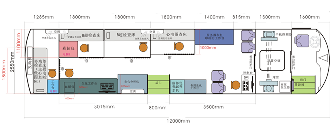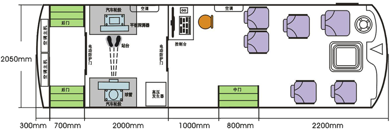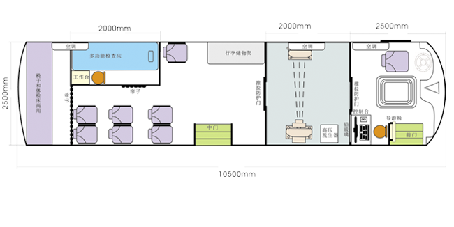 DR体检车立铅防护室,把DR铅防护室安装体检车中心,图像数字化处理成像准确。比医院的科室DR便捷,而且有相当不错的抗震效果,在生产DR车的时候,考虑到车载DR较科室DR功率略小,在体检车上定制车载DR能高效完成放射类体检项目。其放射X剂量少很多,也让移动体检车在行驶过程中更安全。采用三层以上喷涂喷砂技术、防锈防腐、光亮钯漆技术。