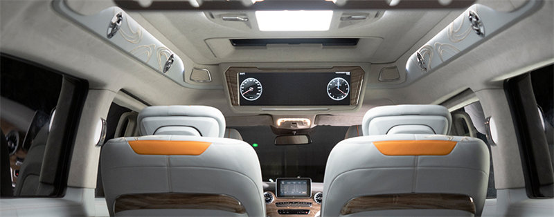 改装商务车集成式总控显示屏,灯光、音响、投影,一触即控,随时办公 休闲,配备悬浮式多媒体屏幕雅马哈音响系统3M轻量型隔音