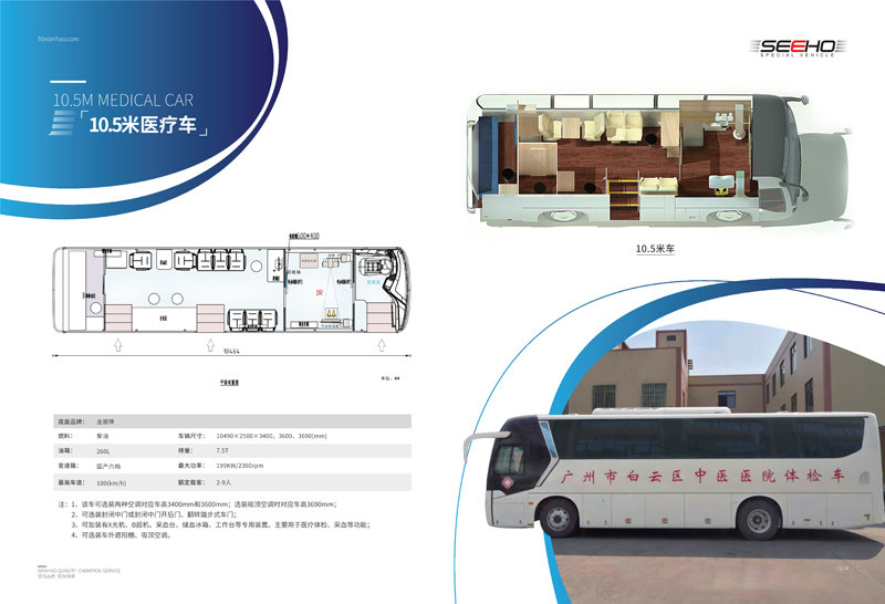 伟德国际1949专用车生产的体检车均选用一线品牌车(宇通、金龙、金旅)实用、先进、布局合理、操作方便、驾乘舒适。 体检车长有6米、7米、8.2米、9米、10.5米、11米、12米可选。