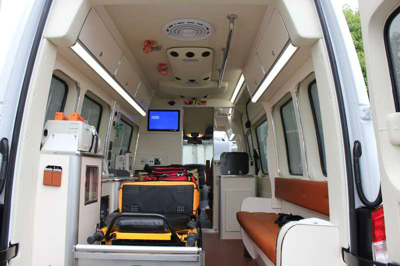 高科技医疗车从外观上和普通救护车没什么区别,重疾病人在转运过程中,运送环节重中之重,这就需要在救护车实施各类抢救。赢得宝贵时间,最大限度保障患者的生命安全。新型高科技救护车,内设呼吸机,配备大量氧气,可以支持呼吸机连续使用5小时。特别适用长途转运。还配备了5G移动救护信号和医院联网及时解决各种救护过程问题,救护车宽敞,位置满足做手术条件,可以进行开胸,开腹紧急手术。移动心电监护仪比遥控大不了多少,使用非常方便。心肺复苏机也必不可少,气管插管等仪器设备都是目前最先进的。